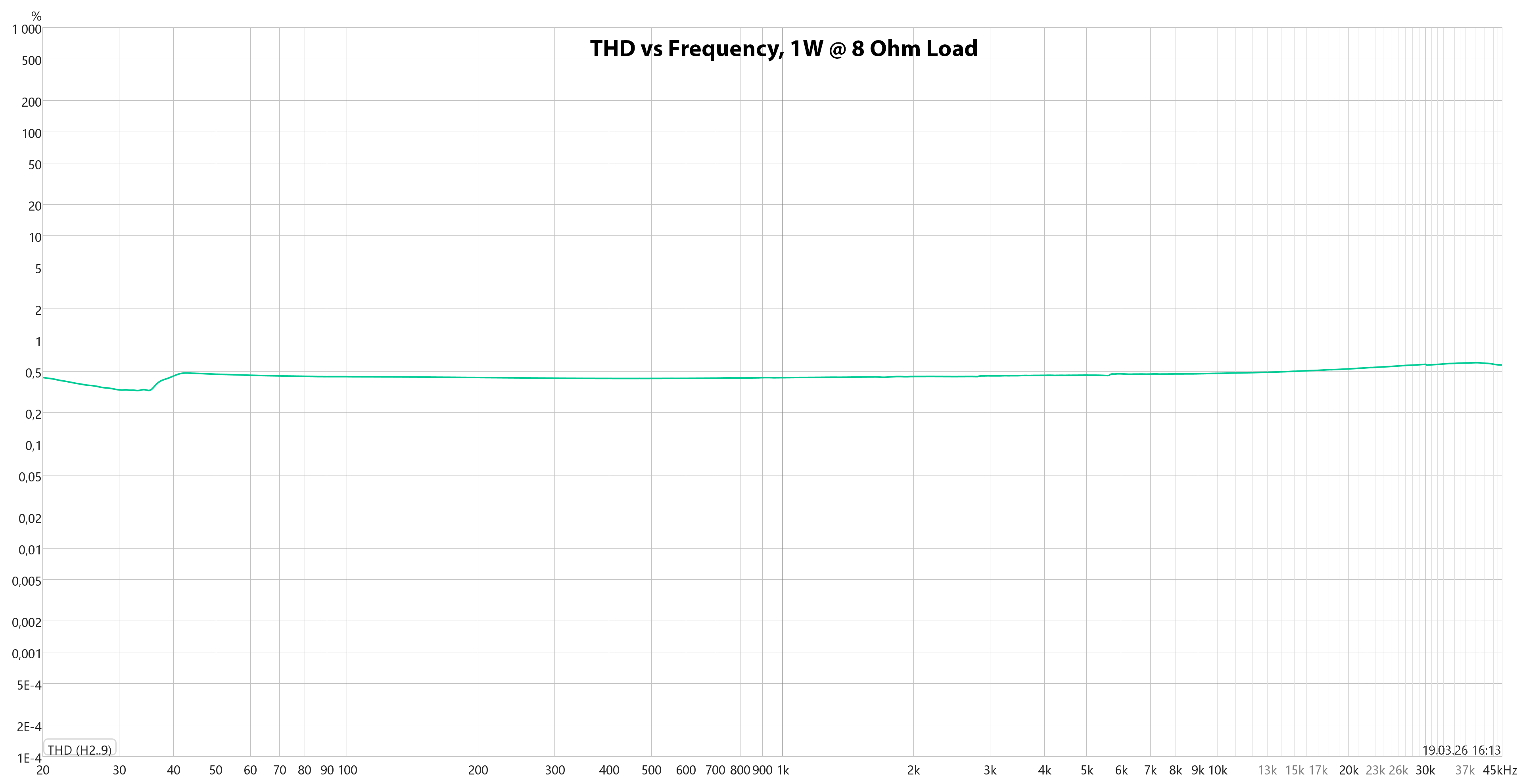 - Distortion (THD): 0.5% at 1 Watt output