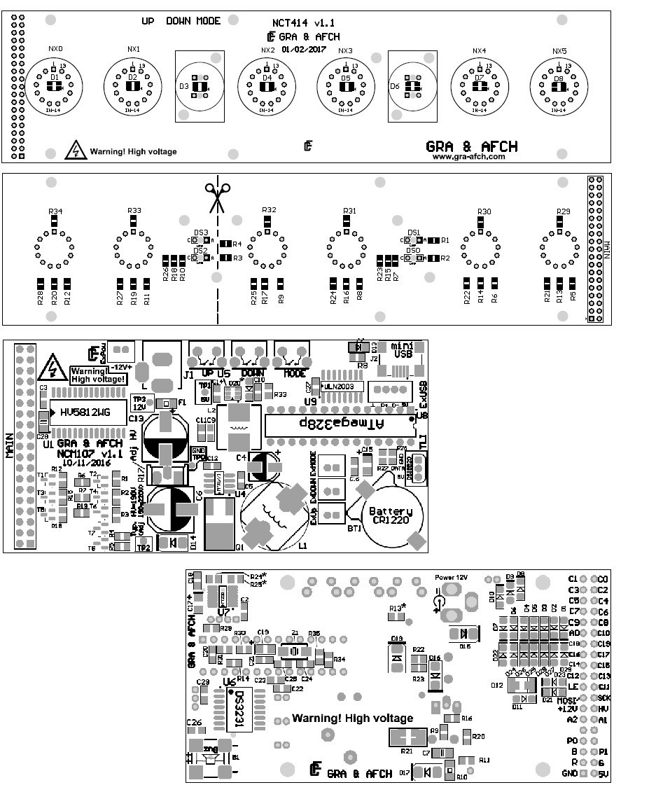 NCT414 v1.1 Tubes Board and Control Board MCU NCM107 v1.1 Layouts top and bottom sides