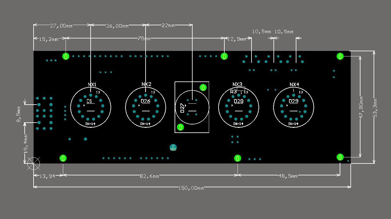 Shield Tubes Board NCS314-4 v3.0 2D Render top Inverted with dimensions